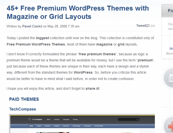 One of the biggest visual collection of Free Premium WordPress Themes, most of them have magazine or grid layouts.